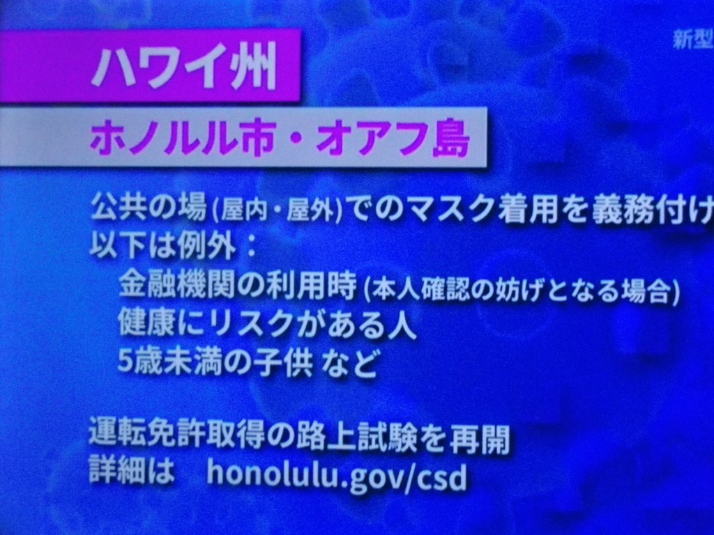 東京は今日もコロナ感染者が200名を超えました。WHO今日発表の内容によると、どうも空気感染が疑われるようで、大陸国はコロナ撲滅が難しい状況のようですね!オアフ島は他のハワイ島より感染者が高いのは、本土からの渡航者が多いことが原因では?早い段階でワクチンが開発製造されないととんでもないことになりそうです。