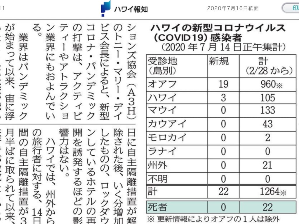 ハワイコロナ情報、ハワイ報知電子版より!相変わらず増えてます、、汗。
