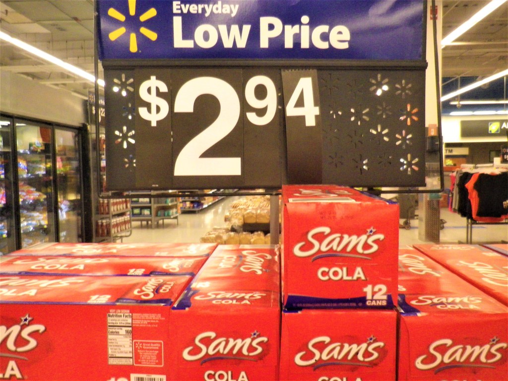 えーっ、コーラが12缶でこの値段とは!ウォルマートにて。