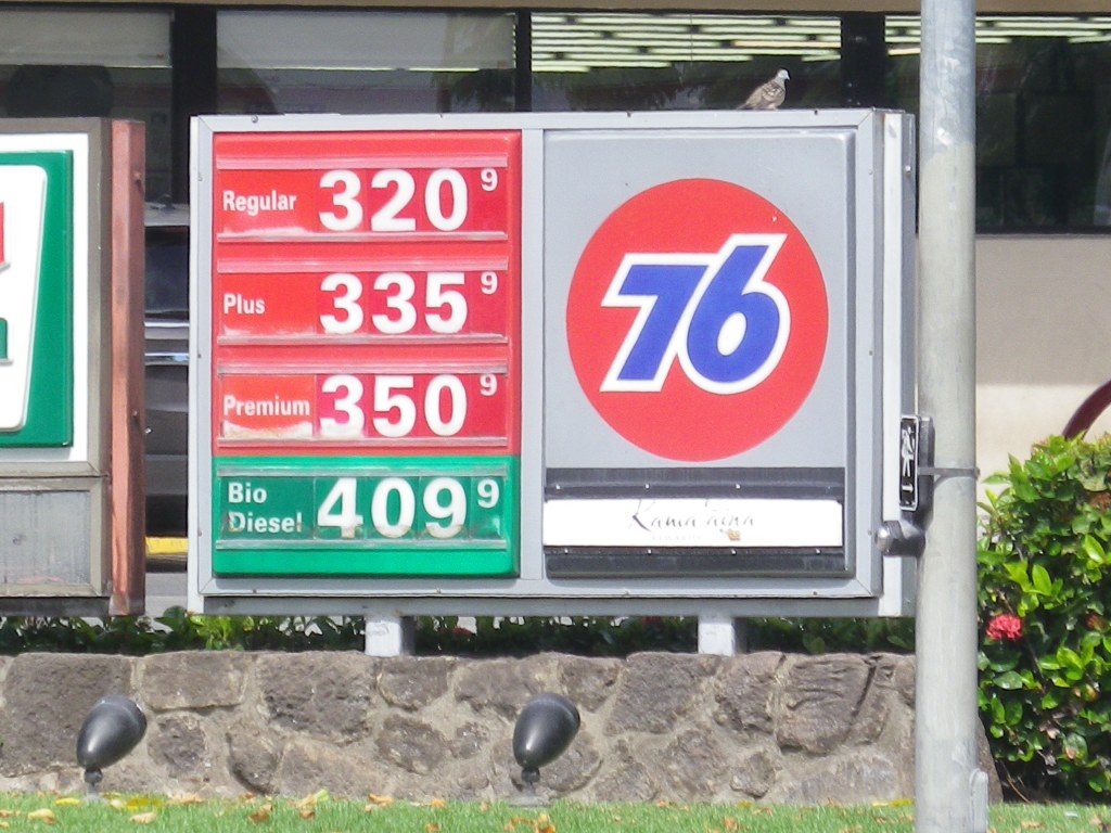 キング&ピイコイ角のテキサコ・ガス・ステーション。レギュラーでガロンこの値段です!