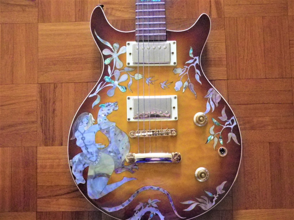 健太のギターコレクション、裸婦・螺鈿細工のボディー!