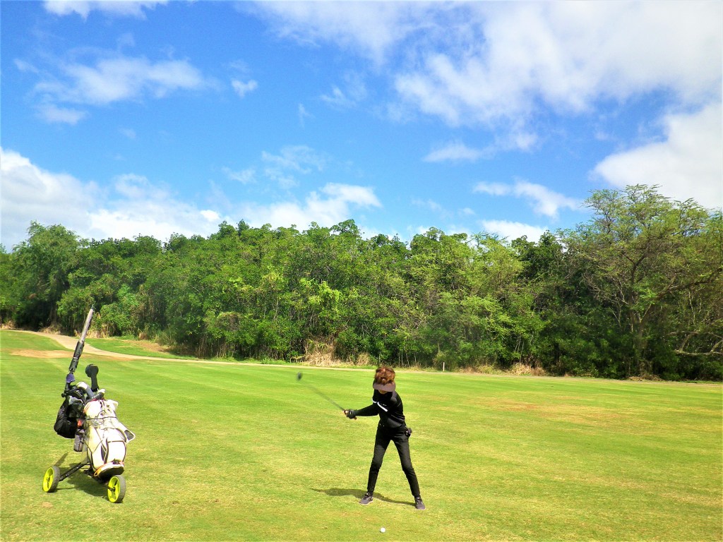 ウエストロック14番ロングホールのトンマさん素晴らしい! 水の巻の一部インパクトで脱力の滝の巻、ドライバーではどうしても左手が行き過ぎてしまう感じです。 木にマットをぶら下げてそこに打つ練習を始めます。 これで14番ツーオン狙えるかも。