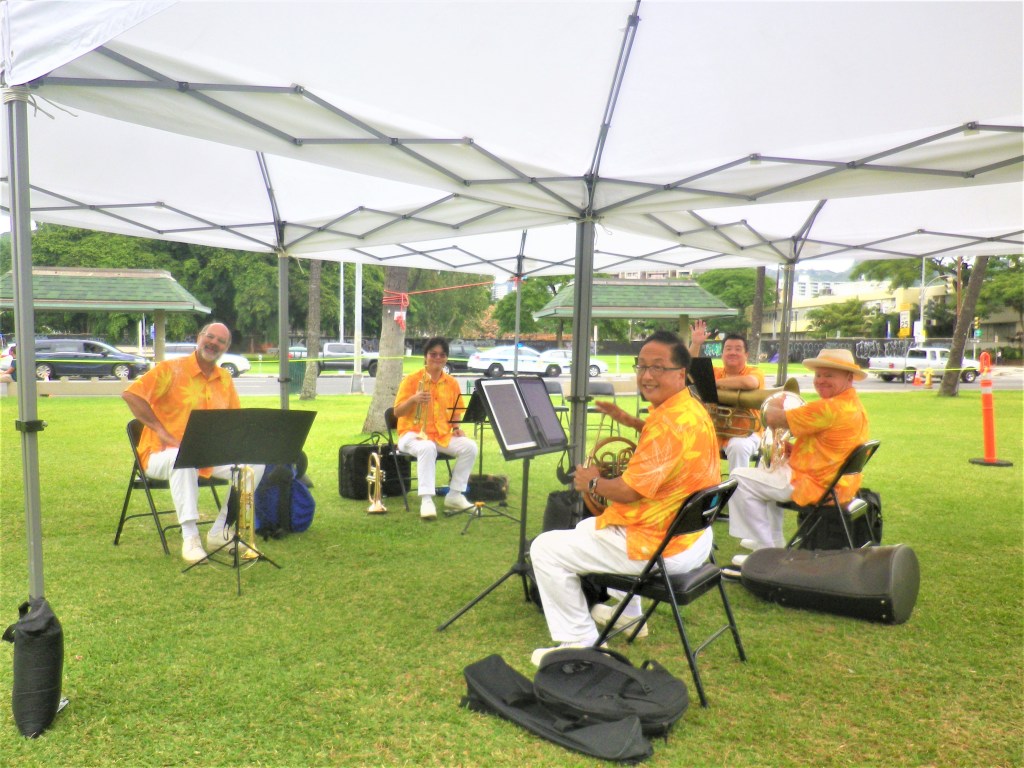 ワクチンクリニックにブラスとはさすがホノルル。 チューバもはいってますね。 私もまだ吹いてますが、ゴルフをメインにしてるので練習はおろそかになってます。