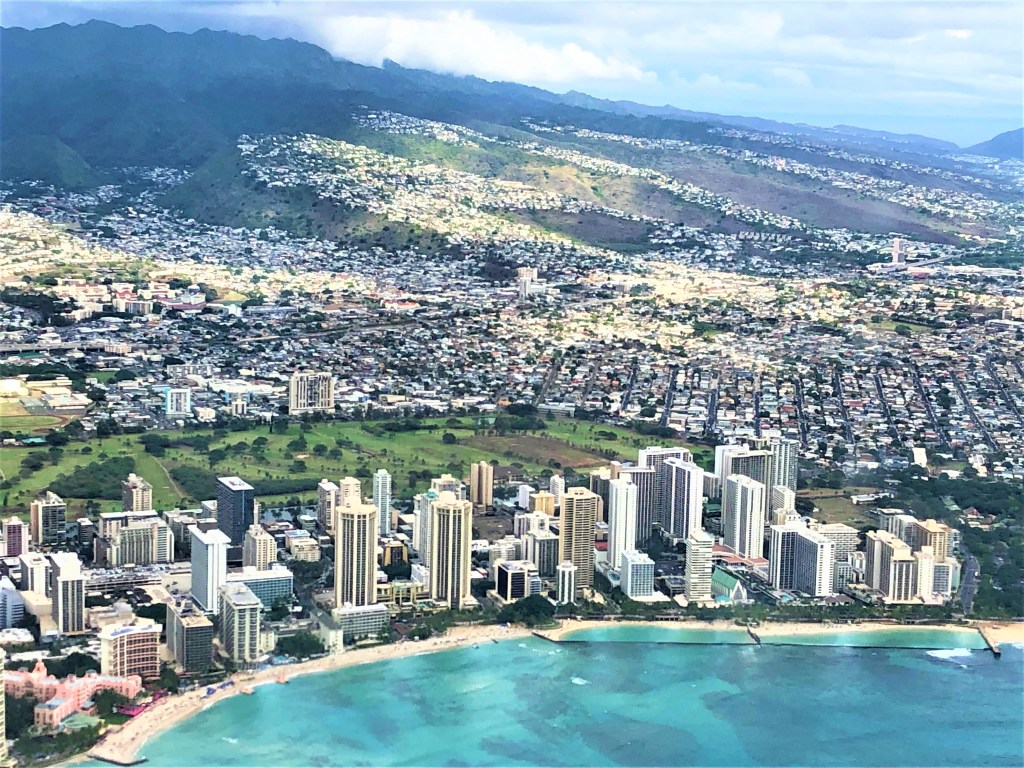 まず滅多にないコナウィンド、右側の窓からこの一連のホノルルの素晴らしい景色、私もこのアプローチは数回しか経験がありません。これが見える時は本当にラッキーです。