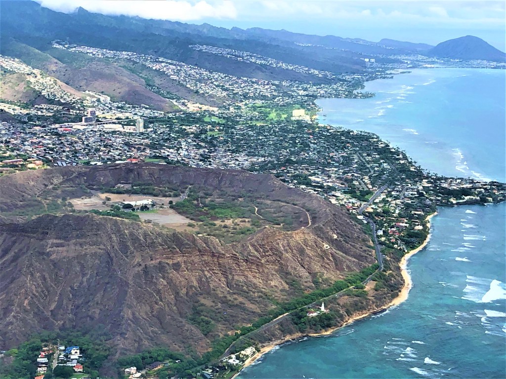 シカゴからの帰路、ダイアモンドヘッド上空。トンマ撮影!