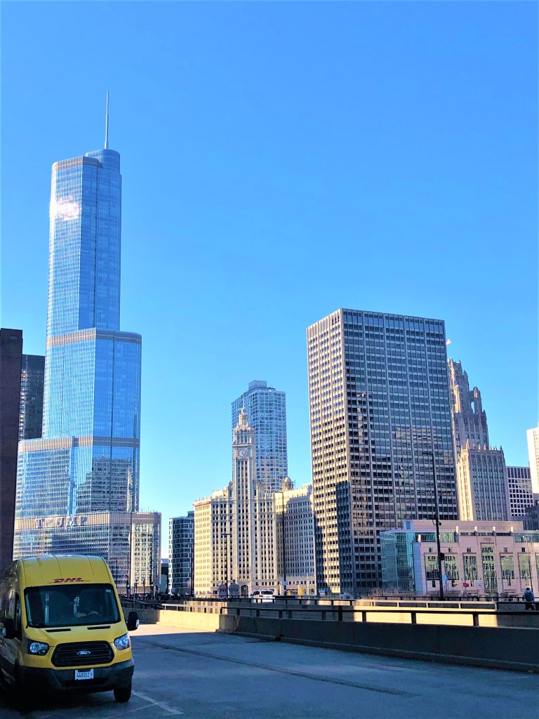 とんまが行ってきたシカゴの街。左の鏡の細いビルがトランプ・タワー!