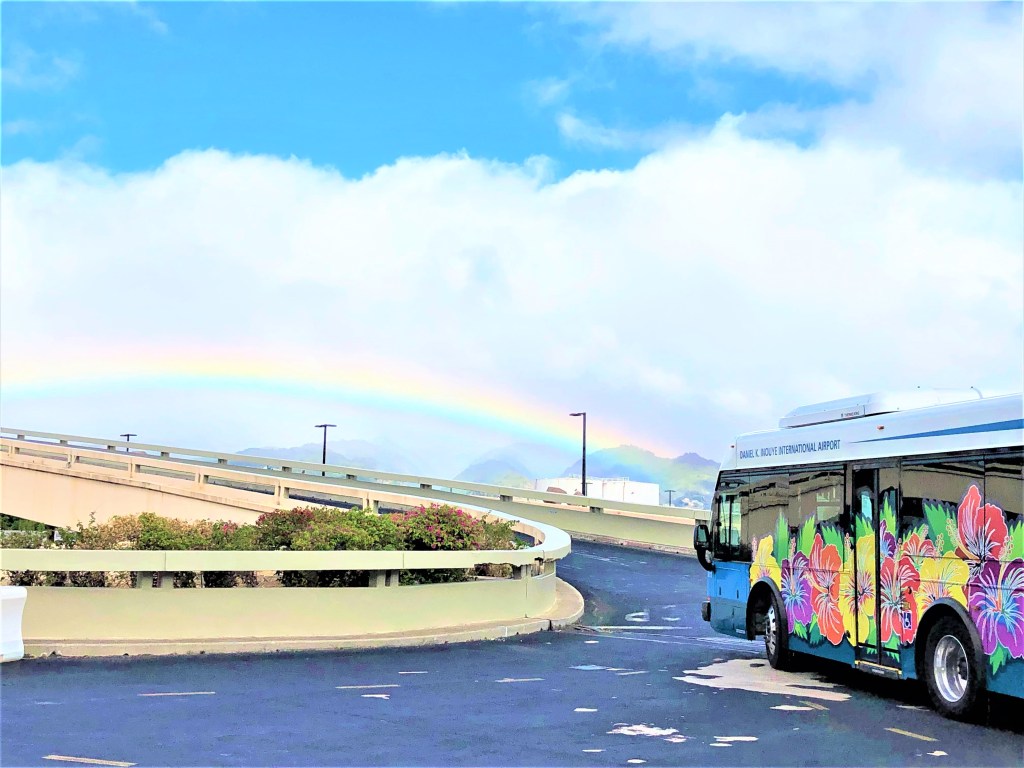 ダニエル・イノウエ空港の虹と、ウィキウィキ・バス!