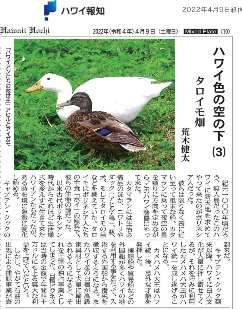 ハワイ報知で連載しているのですね、つい最近電子版の購読を切ったばかりだったので、ここで読めて嬉しいです。