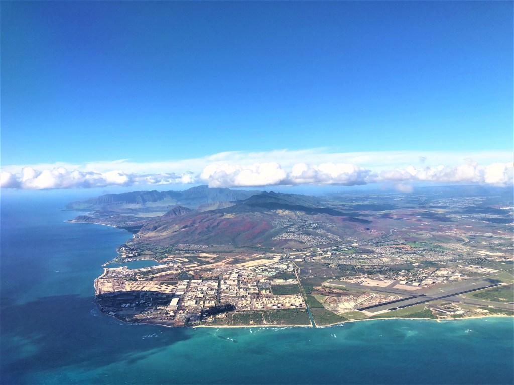 滑走路はバーバーズ・ポイント。左に小さく見える湾が多分ウルアだと思います!