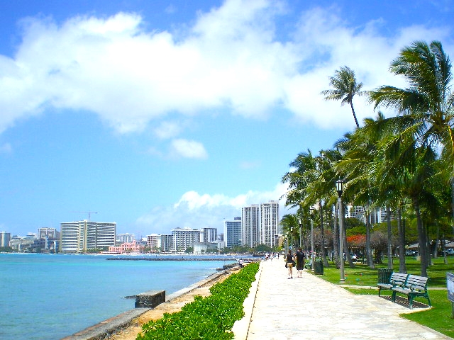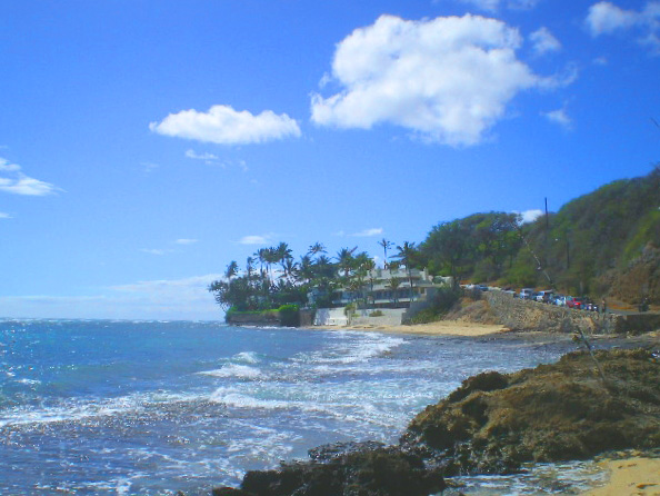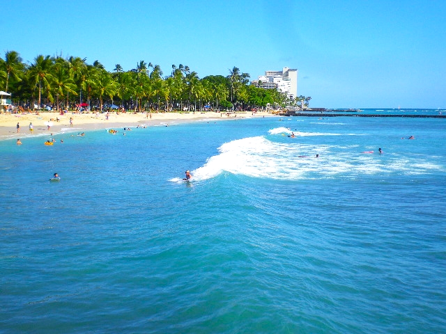 手前の防波堤のところはクヒオ・ビーチ。その先がクウィーンズ・ビーチ。