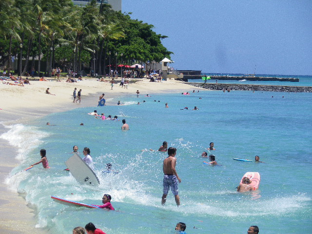 クウィーンズ・ビーチは波が優しいのでブギボードが盛んです。子供たちが沢山来ます。