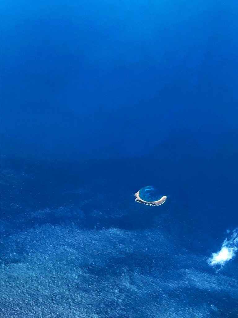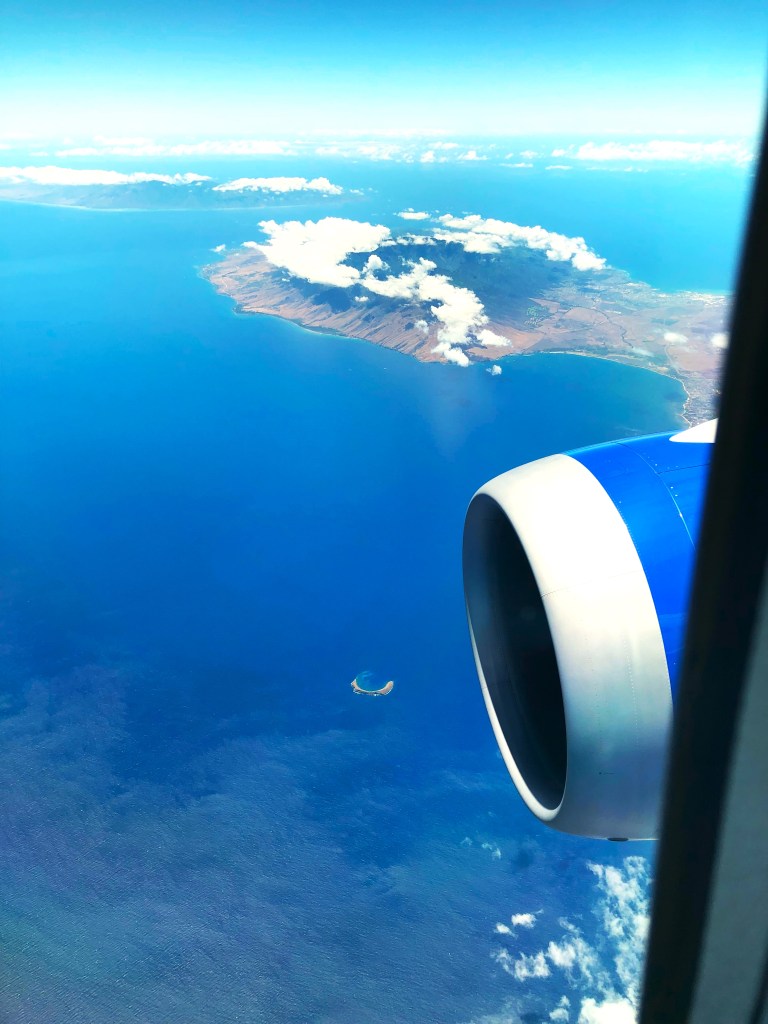 トンマのフライトはシカゴ帰り、マウイ島上空を飛んできました。