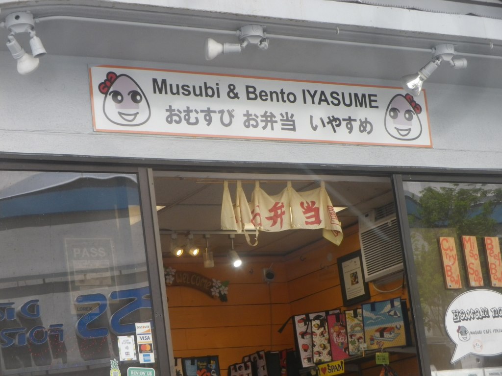 その向かい側の「いやすめ」むすびやさん。弁当ののれん、ちゃんと直しましょう、、汗。