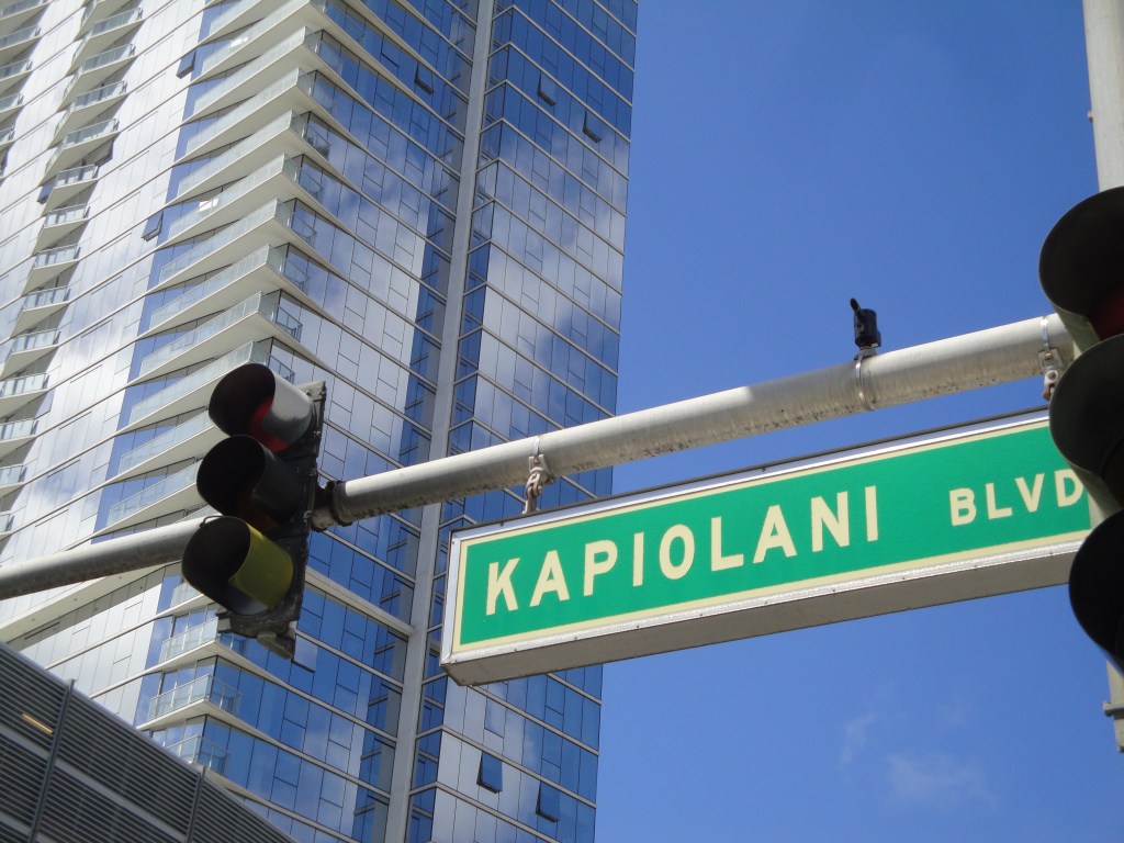 1970年代後半、Waikiki の「 kik の部分の向こう」に見えるコンドに住んでました、、(笑)。ここはワードアベニューのH-1フリーウェー・イーストの入り口です。