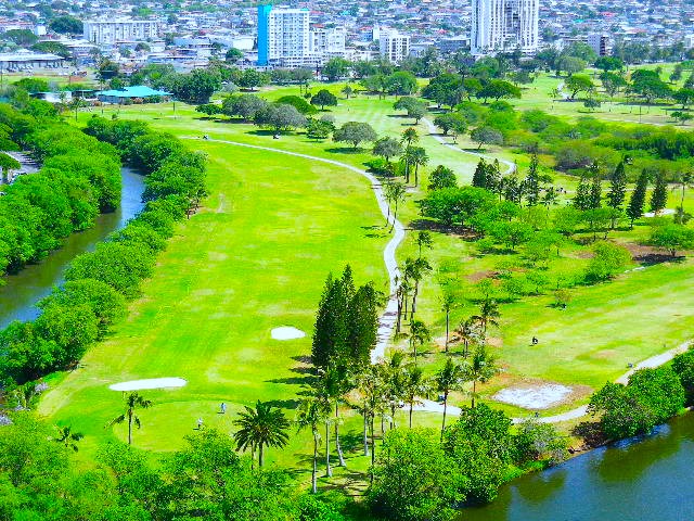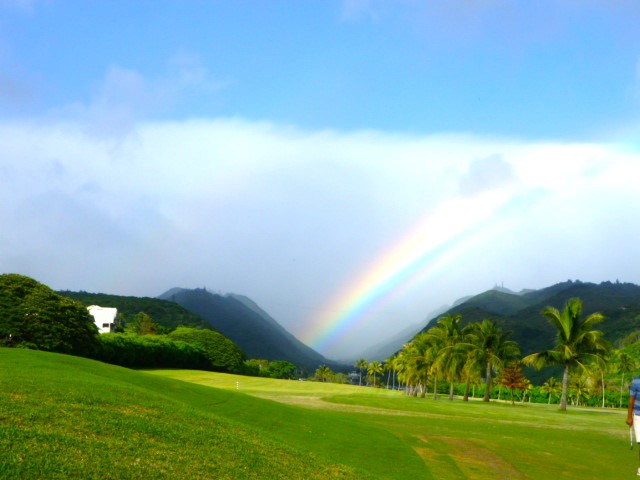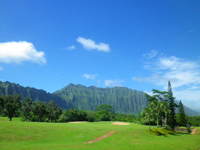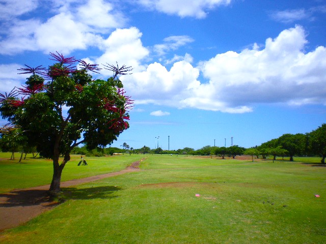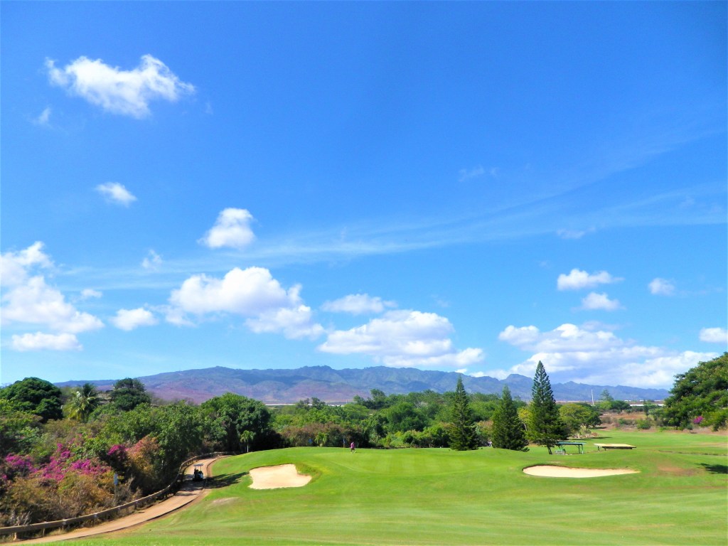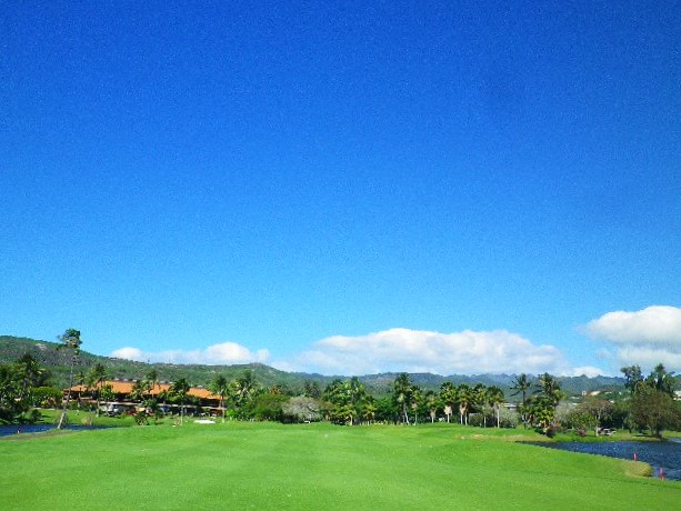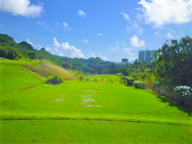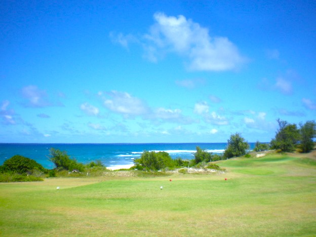 ウェストロック7番ホール、ティーグラウンドから。