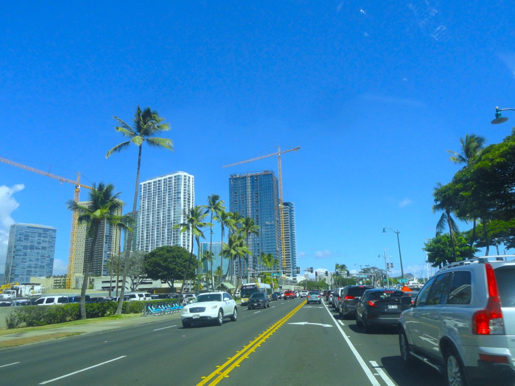 今日のアラモアナ・ブルバード。まだまだ高層コンドが建ってゆく、、。