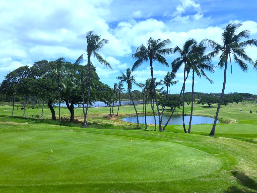 7番ホールのプルメリア。タロッペさん、あんなに常に満開だったのに、花は2,3輪と言う淋しさでした、、、。